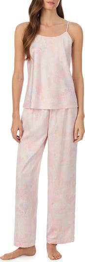 These lightweight pajamas pair a cami with wide-legs pants all covered in a paisley print that brings a boho sensibility to the sweet-dreams style.