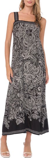 A vacation-ready sundress is styled for warm-weather ease in an intricate paisley print with a breezy silhouette and a smocked back for a flattering fit.