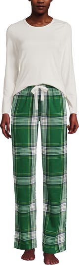 Lands' End Pajama Set Knit Long Sleeve T-Shirt and Flannel Pants, Main, color, Light Emerald Plaid