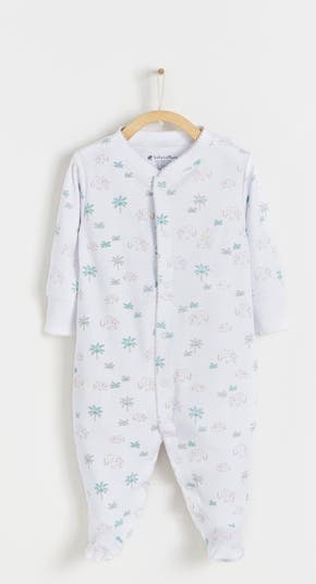 Wrap your baby in our pajama made of 100% Pima cotton. Incredibly soft and cute. This long-sleeve footie features buttons from neck to feet, with palm trees and elephant print allover. The perfect choice for your baby's wardrobe, ensuring sweet and soft dreams!
