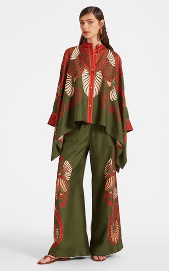 We cannot take credit for inventing the Palazzo Pant silhouette, but we will take credit for making them cool again. These trousers sit on the waist and fall flared, with a wide, breezy fit through the legs – like a skirt, but with the comfort of pants. A bellissima wardrobe addition in this chic and timeless Kerylos print.