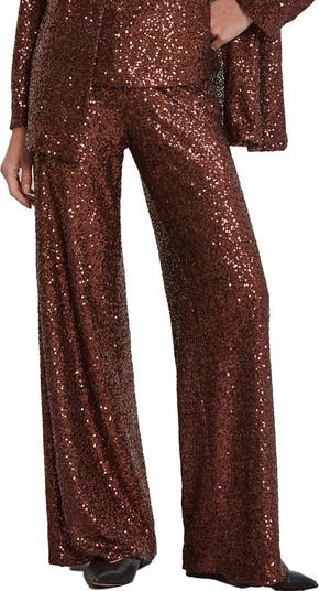 Palazzo trousers with all-over sequins and contrasting bustier.