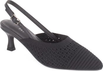 A slender slingback secures this breathable knit pump set on a kitten heel and cushioned footbed for walkable comfort.