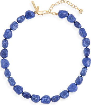 Polished indigo baroque stones bring rich, organic texture to this classic collar necklace strung on a hand-knotted tonal cord and finished with 14-karat gold-plated hardware.