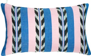 Palm Ikat Striped Pink and Blue Handwoven Cotton Rectangle Pillow