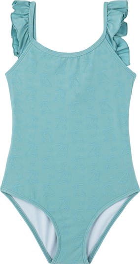 Make a splash in the Palm Party Textured Square Neck Ruffle One Piece! Featuring a playful square neckline with ruffle straps and an adjustable bow for a secure, customizable fit. Made for comfort and durability, it offers built-in UPF protection and chlorine resistance for long-lasting wear.