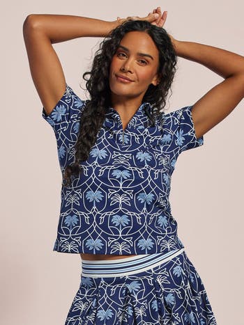 While the royal palm isn't native to Hawaii, it's become synonymous with the visual culture of the islands. Its proportions, with slender trunk and flamboyant fronds, create an almost geometric motif across the landscape. The Mira Polo is a slim-fitting top with short sleeves and an invisible zip-front placket. Featuring Tradewind Technology™, this 4-way stretch style wicks away moisture and dries quickly, making it ideal for humid climates. It has enhanced stretch, wrinkle resistance and UPF sun protection.