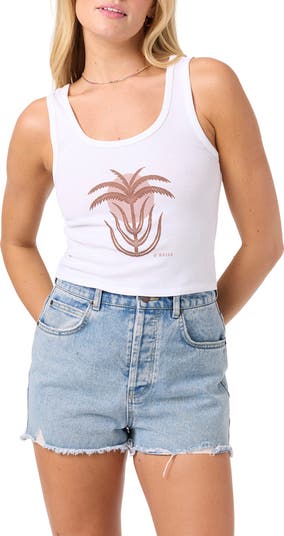 Find your place in the sun in this abbreviated soft cotton tank stamped with a desert palm tree.