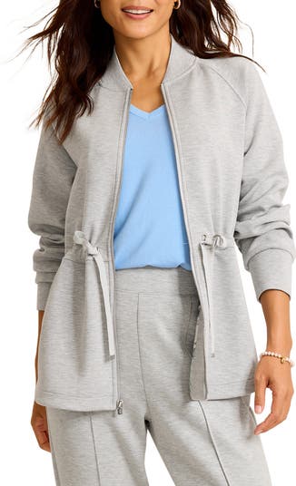 Lounge or lunch in this lightweight zip-up jacket that's cinched at the drawstring waist and made from a soft, breathable modal blend knit.