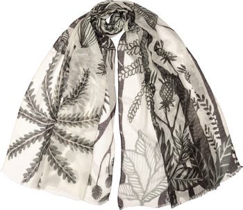 Light, airy, and easy to wear, this long scarf/shawl features tropical palms and botanical motifs, bringing a fresh, relaxed feel to warm-weather dressing. Wear it as a shawl, scarf or cover-up.