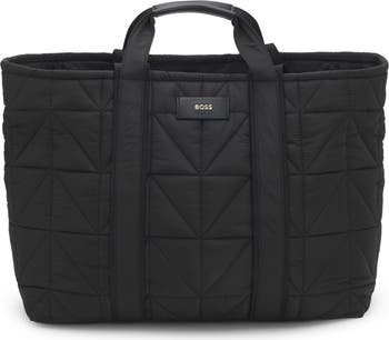 Dual sets of handles and plush geometric quilting contribute to the comfort of this spacious tote bag that can take you from work to gym with ease.