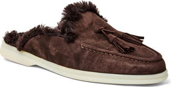 Luxurious genuine-shearling lining and officewear-inspired tassels polish up the look of this Italian-crafted mule made from rich, supple suede.