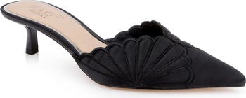 Scalloped detailing brings the perfect touch of Deco-era charm to a satin mule grounded by comfort cushioning.