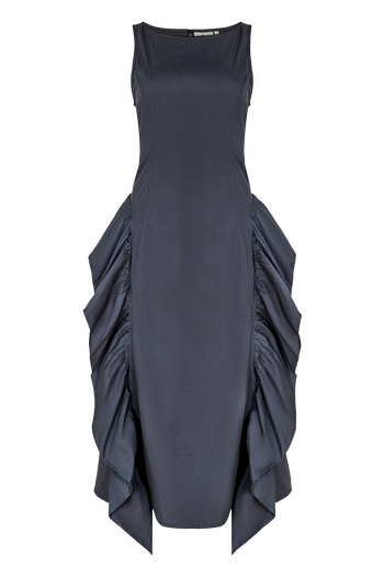 The Palmetta Dress is defined by a sculptural side ruffle beginning at the hip. This fluid maxi silhouette creates movement and drama and is designed to be worn where it can be seen.
