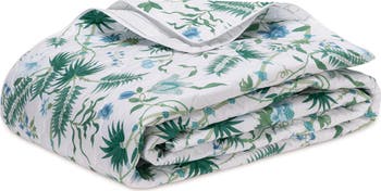 Take off for an island paradise every time you fall asleep in the lush surroundings of this quilt made from fine 500-thread-count Egyptian cotton covered with a vibrant print based on an archival Schumacher wallpaper.