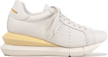 A sporty, architectural wedge lends a modern edge to this flexible sneaker featuring breathable perforations and a padded collar.