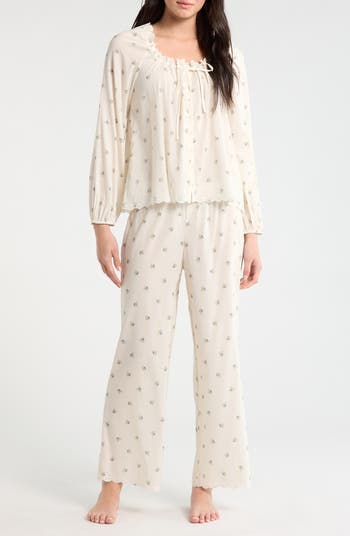 A ditsy floral print, scalloped eyelet trim and tied neckline all add up to make these lightweight, breathable voile pajamas the perfect pair to lead to sweet dreams.