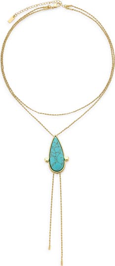 Evoke nature-inspired beauty with this striking layered necklace in a bolo-inspired design showcasing a beautiful stone and high-shine goldtone-plated chain.
