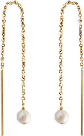 Featuring a single 6mm freshwater pearl suspended on a fine chain, these threaders effortlessly thread through your piercings for a graceful and adjustable fit. They are held in place by friction and will not easily slip out. Sold as pair.