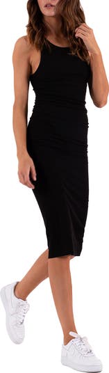 This closet-essential tank dress is designed with shapely ribbing and a sleek, easy-moving racerback.