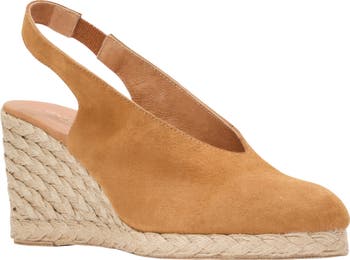 A high-cut topline and supple suede upper bring distinct elements to an espadrille-inspired pump set on a subtle platform and jute-wrapped wedge heel.