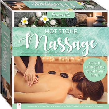 Prepare for the ultimate spa day with the Pamper Me: Hot Stone Massage kit! Inside you’ll find everything you need to give the perfect hot stone massage, including 8 stones and a 24-page book packed with information on hot-stone-massage techniques. This kit also teaches you how to use aromatherapy oils in your massage: an effective way of relieving stress and promoting physical and emotional wellbeing. Follow the detailed massage technique instructions to achieve total relaxation while loosening stiff muscles, helping circulation, and promoting deep-tissue healing. ENJOY A RELAXING SPA EXPERIENCE in the comfort of your own home with Pamper Me: Hot Stone Massage!