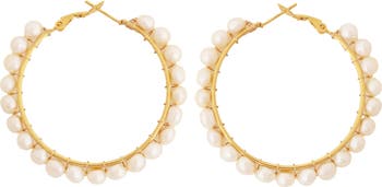 Glow with every turn of your head with these elegant hoop earrings detailed with luminous freshwater pearls that seem to dance along the curves.