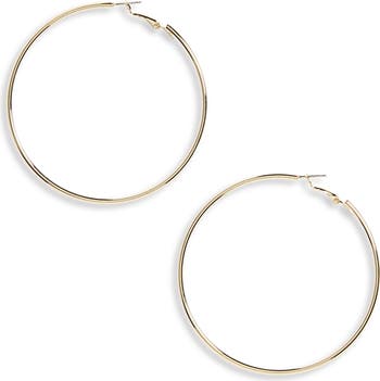 Classic hoop earrings plated in 14-karat gold provide a dramatic finish for any look.