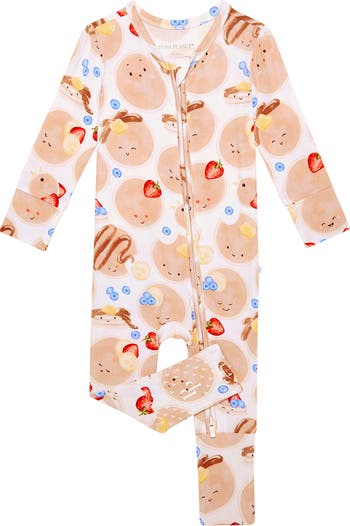 Delectable looking pancakes bring abundant charm to this zip footie made from buttery-soft fabric and finished with grips on the feet for steady standing and stepping.