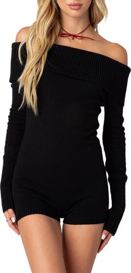EDIKTED Pandorah Long Sleeve Off the Shoulder Knit Romper