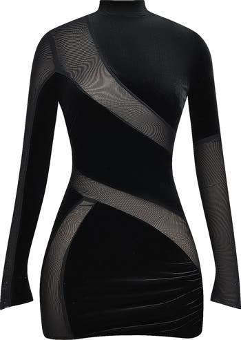 Sleek mesh panels elevate this night-out mini crafted from luxe velvet.