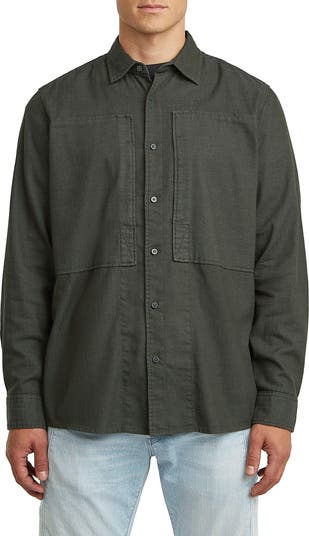 Prominent pockets switch up the look for a dusky shirt designed with an enzyme-washed pigment-dyed process to add character to the color.