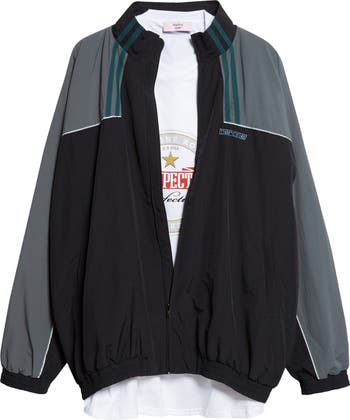 Paneled Nylon Track Jacket with Graphic T-Shirt Lining