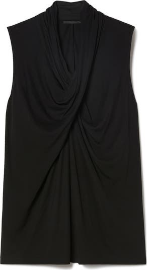 This slim-fit shell in smooth crepe interlock jersey is elevated by a draped twist detail at the front for soft dimension. Designed to be worn on its own or customized with the included short sleeves that can be sewn on, it offers a modern, versatile take on a wardrobe essential.