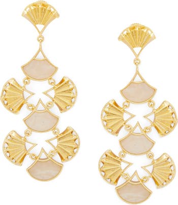 Part of the Souk collection, the Pankha Earrings reimagine the traditional hand fan as a sculptural, wearable form. Handcrafted in 22k gold-plated brass, each fan is textured or inlaid with mother-of-pearl resin, layered together to create a cascading silhouette that moves with lightness and rhythm.