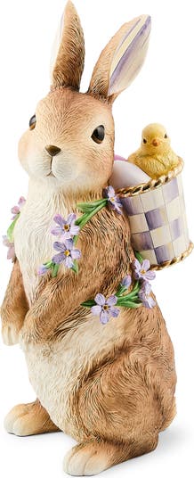 This sweet bunny sculpture is ready to bring the party with a pack loaded with goodies and signs of the season.