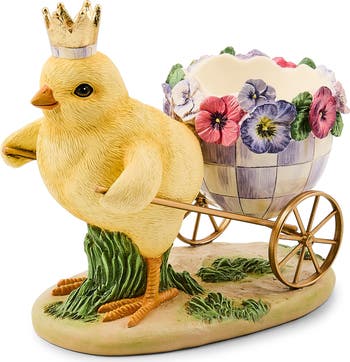 This sweet baby-chick figurine is ready to bring the party with a cart you can fill with goodies or blooming signs of the season.