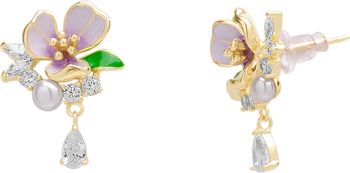 Pansy Violet Floral Earring in Sterling Silver