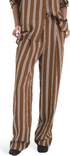 Polished stripes and pleats add a refined element to casual pants cut in a roomy straight-leg silhouette.