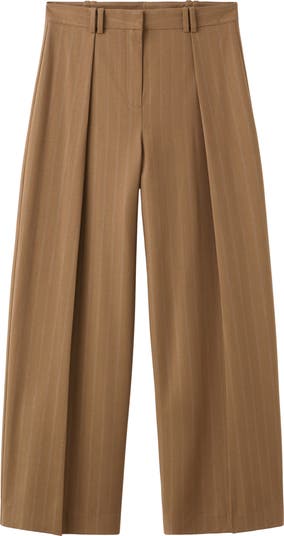 Crisp pleats amplify the polished vibe of mid-rise wide-leg pants done in neutral pinstripes that allows your accessories to pop.