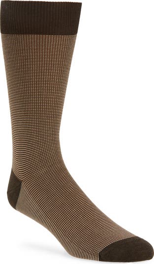 Contemporary dress socks are made from a soft mercerized-cotton and nylon blend knit in the brand's popular bird's-eye design.