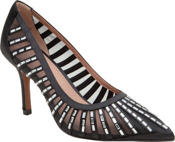 Lustrous jewels highlight the peekaboo mesh insets on a pointy-toe pump set on a tapered for soirée-ready height. An OrthoLite® footbed and slip-resistant sole provide lasting comfort and stability.
