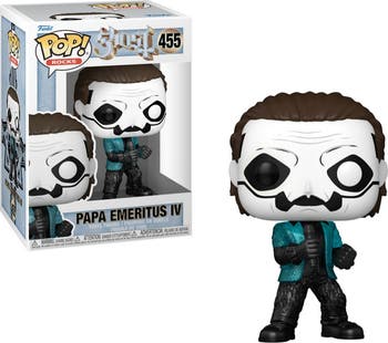 Papa Emeritus IV (Ghost) "Glam" Funko Pop! Rocks. Vinyl figure measures 3.75 inches and comes packaged in a Funko Pop! window display box.