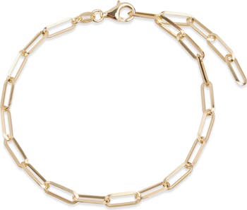 A timeless piece, this adjustable paper-clip chain bracelet is crafted in lustrous sterling silver plated in 18-karat gold for luxurious style. Stack it with your favorites for rich texture or style it solo to evoke minimalist elegance.