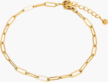 Crafted with elongated paperclip-style links, this bracelet adds a modern edge to any wrist stack while keeping it timeless and refined. Link size: 3mm x 8mm; chain length is adjustable up to 8 inches. Hypoallergenic, nickel, and lead-free; tarnish resistant.