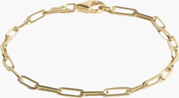 This paperclip link chain bracelet features a modern and delicate design, perfect for adding a touch of elegance to any outfit.