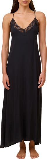Whisper soft fabric lends beautiful drape to this maxi-length nightgown tipped with delicate floral lace.