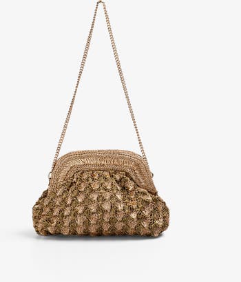 Handbag made of 100% metallic yarn with 100% cotton inner lining and logo detail on contrasting lining