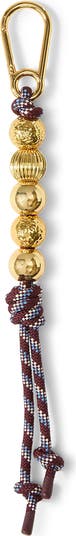 Glossy beads and woven tassel strands create an eclectic mix of textures on a stylish bag charm fitted with a handy clasp perfect for affixing to your keys of favorite handbag.