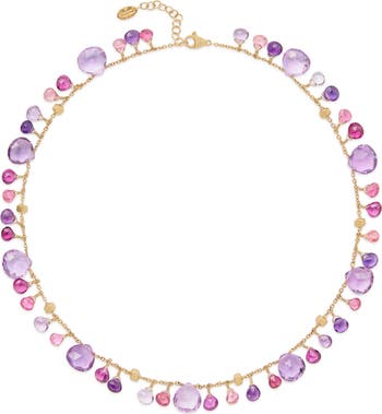 Twinkling semiprecious stones in gorgeous hues illuminate this slender charm necklace handcrafted in Italy from warm 18-karat yellow gold.